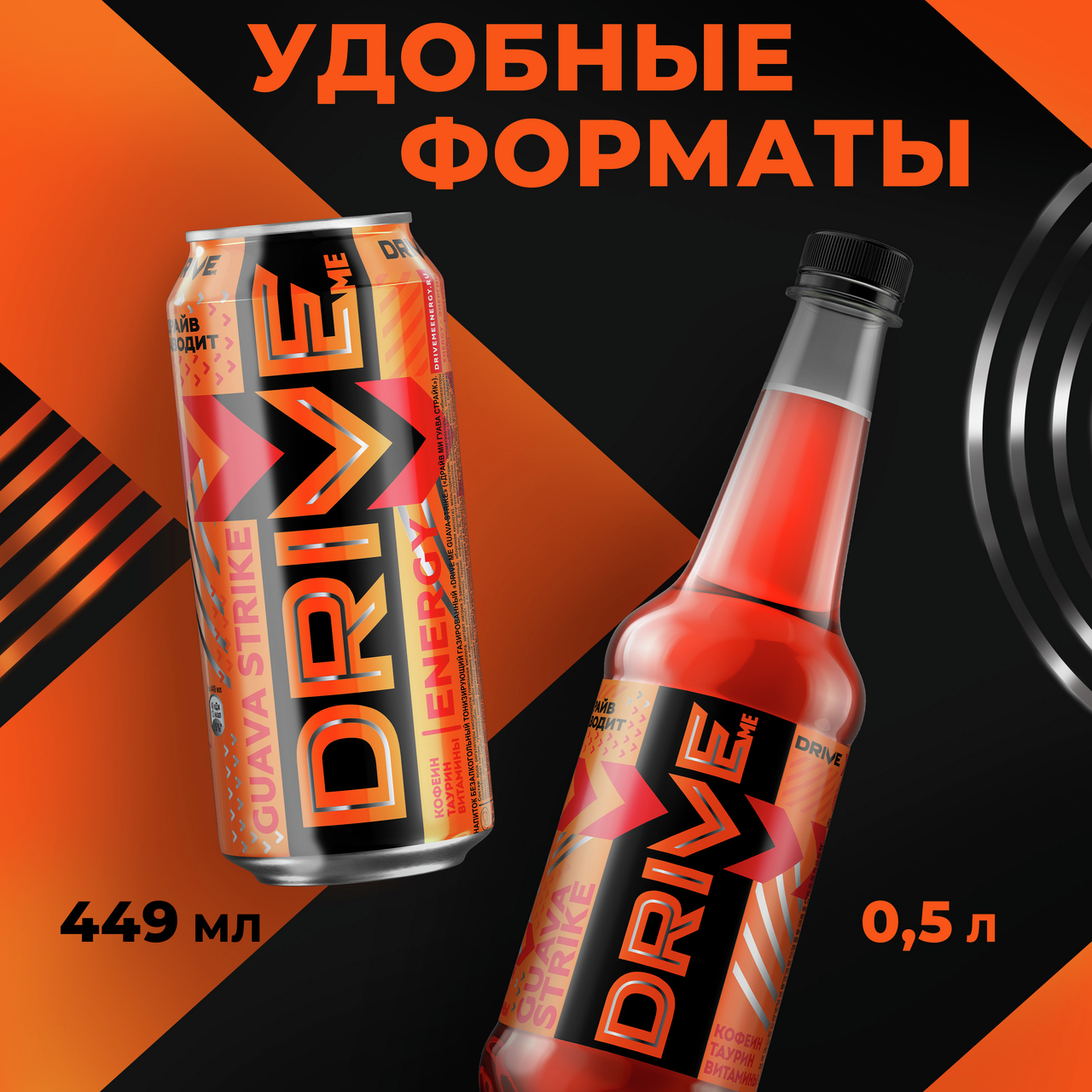 Энергетический напиток Drive Me Гуава-Манго без сахара, 449мл