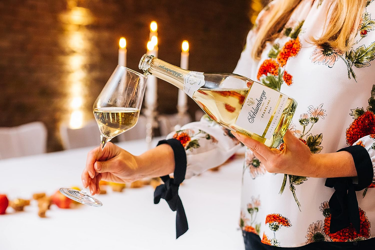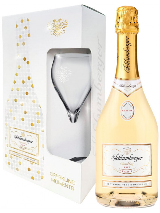 Вино игристое Schlumberger Sparkling Brut Klassik белое брют в подарочной упаковке + 1 бокал, 0.75л