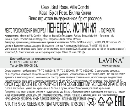 Вино игристое Villa Conchi Cava розовое брют, 0.75л