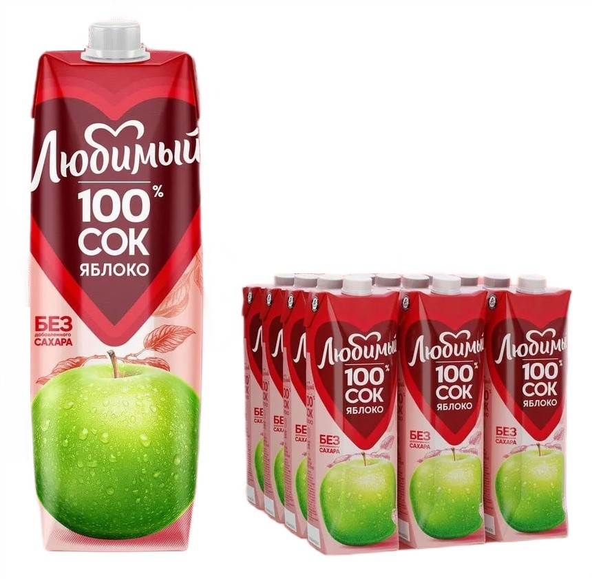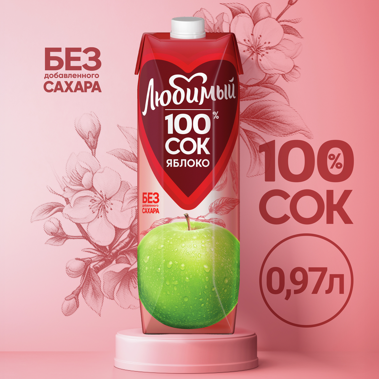 Сок Любимый яблоко осветленное, 970мл x 12 шт
