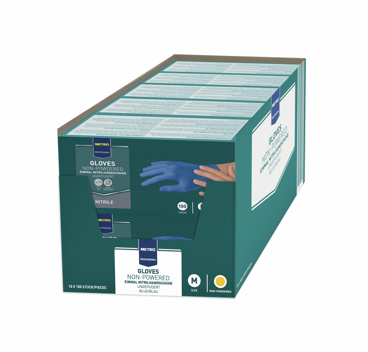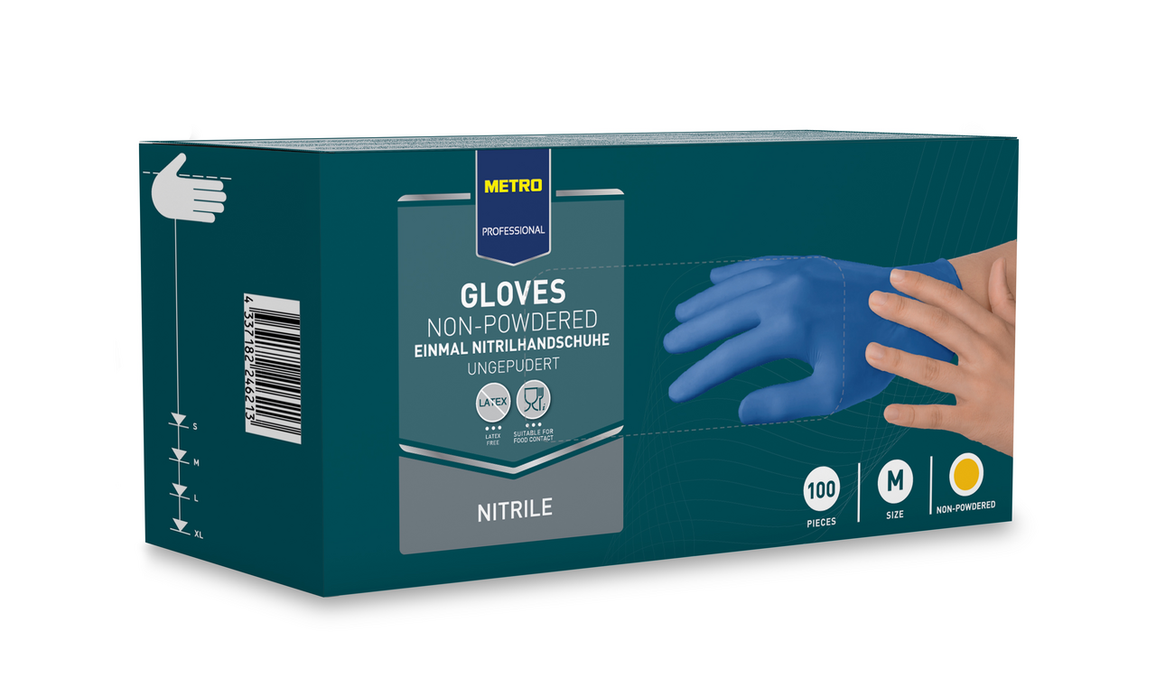 METRO PROFESSIONAL Перчатки нитрил синие размер L 50 пар, 100шт широко используются не только в медицине, но и в косметологии (при проведении процедур и окраске волос), в быту (при уборке дома и мытье посуды), для ухода за домашними животными. Изготовлены из нитрила, устойчивого к слабым растворам кислот и щелочей.