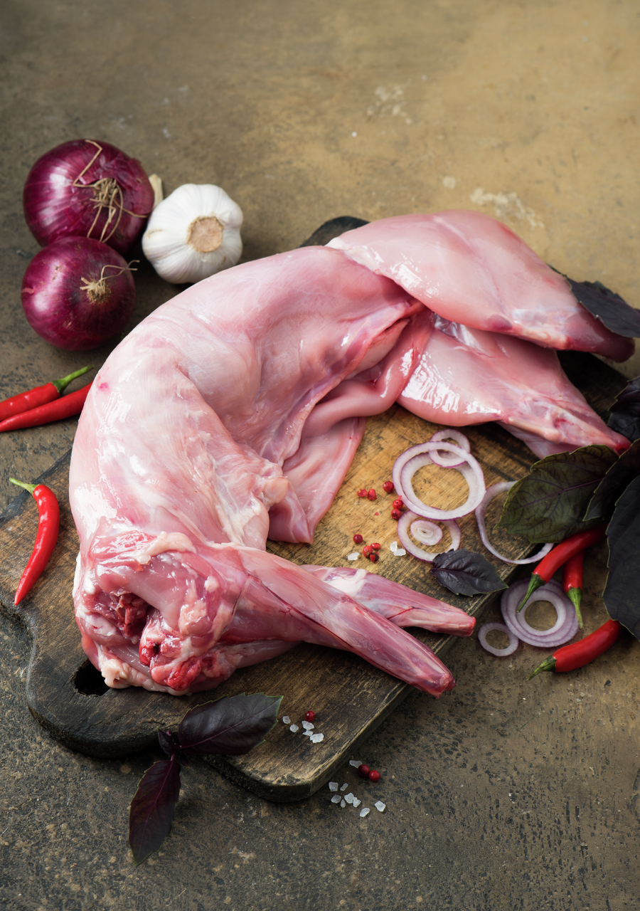 Деликатес, который позволит приготовить разнообразные диетические блюда. Мясо имеет нейтральный вкус, слабовыраженный аромат и мягкую консистенцию. Крольчатина богата легкоусвояемым белком, а по содержанию минералов и витаминов группы В превосходит даже говядину и баранину. Продукт гипоаллергенный, поэтому его можно маленьким детям, беременным и пожилым людям. Тушку кролика запекают, используют для приготовления фарша, бульонов или тушеных блюд. Мясо гармонично сочетается с гарниром из риса, фасоли, картофеля и томатов. Для лучшего вкуса рекомендуем замариновать тушку на несколько часов в вине и натереть ее прованскими травами.