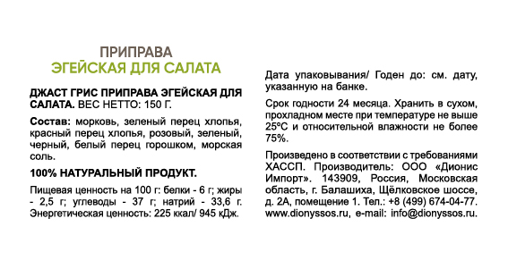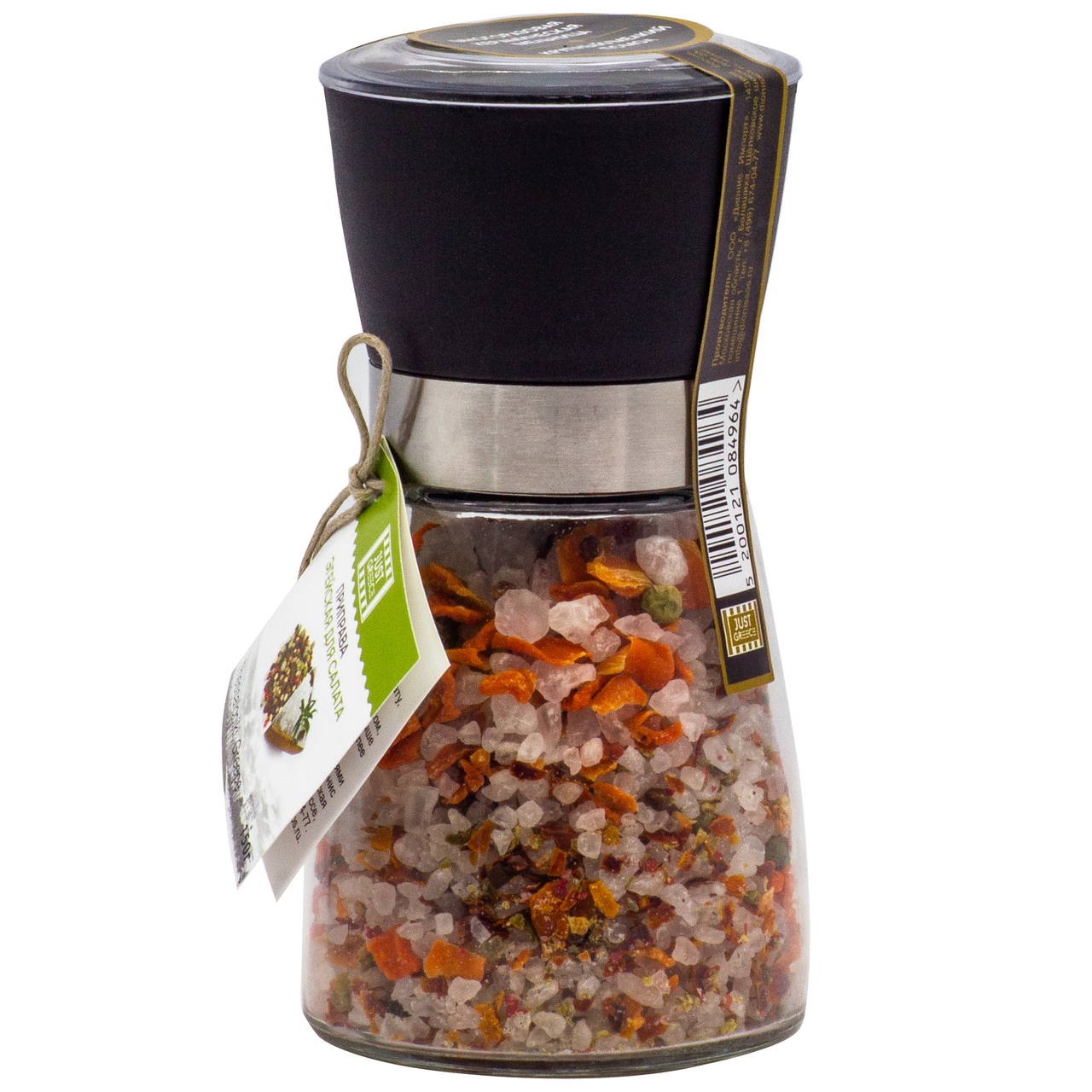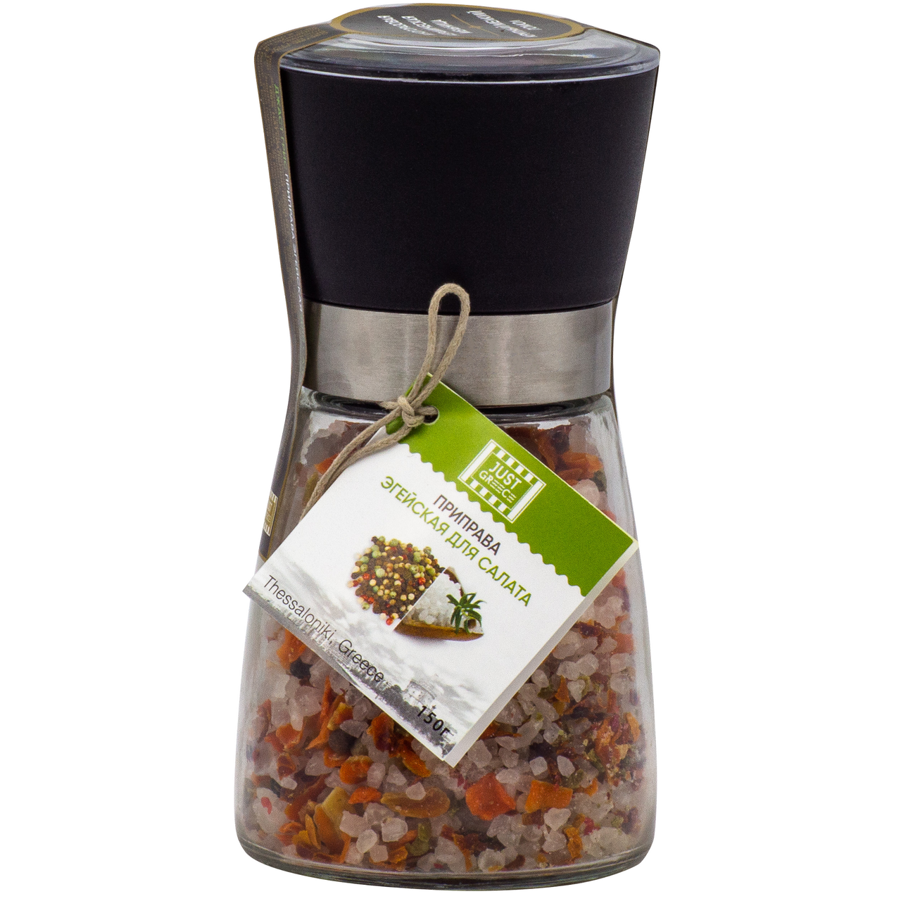 Приправа Эгейская от Just Greece — это смесь четырёх видов перца с морской солью и морковью. Она идеально подходит для заправки салатов. Продаётся в мельнице с керамическими ножами и регулируемым помолом.