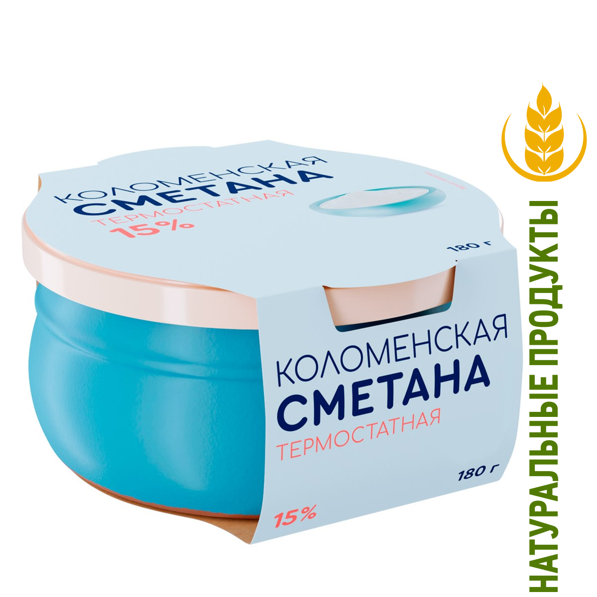 Сметана Коломенская приготовлена по ГОСТу из сливок термостатным способом в стеклянной баночке. Обладает нежным приятным сливочным вкусом. Термостатная технология изготовления позволяет продукту содержать большое количество полезных бактерий, обеспечивая исключительную свежесть и пользу продукта. Возможно естественное выделение сыворотки, что свойственно натуральным термостатным продуктам. Всё просто, натурально и прозрачно. Даже упакована сметана в стеклянную банку, которую можно использовать вторично на кухне и в быту.