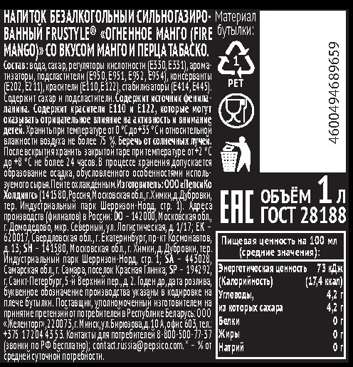 Напиток Frustyle Огненное манго газированный, 1л x 12 шт - газированный напиток с исключительно ярким вкусом. Он заряжает энергией, дарит отличное настроение и замечательно освежает. Напиток подходит для употребления в течение дня. Также его используют для приготовления коктейлей.