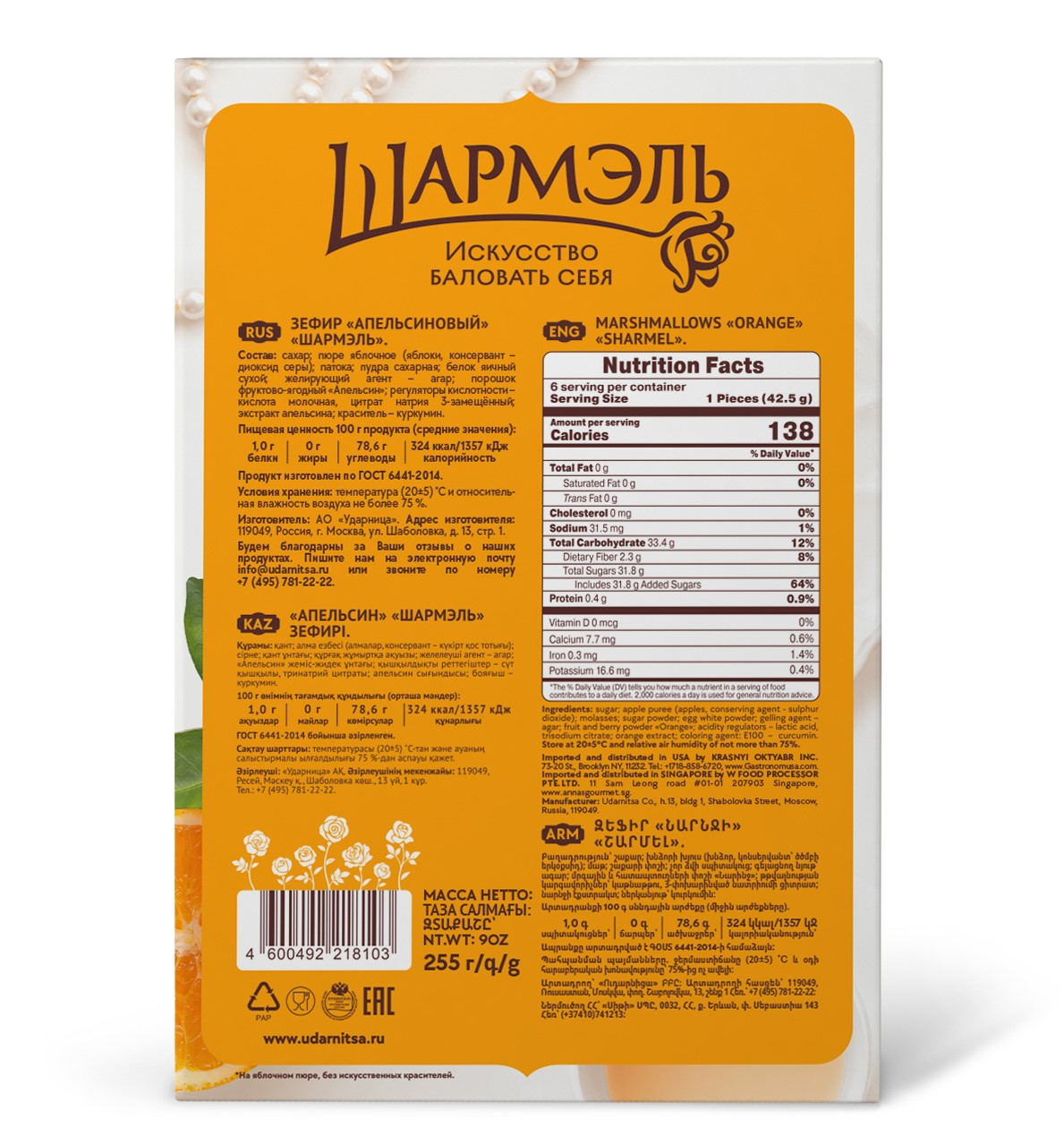 Зефир Ударница Шармэль Апельсиновый, 255г