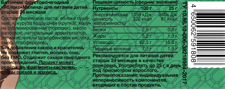 Батончик фруктовый детский Take a Bitey Яблоко и малина с 2 лет, 25г