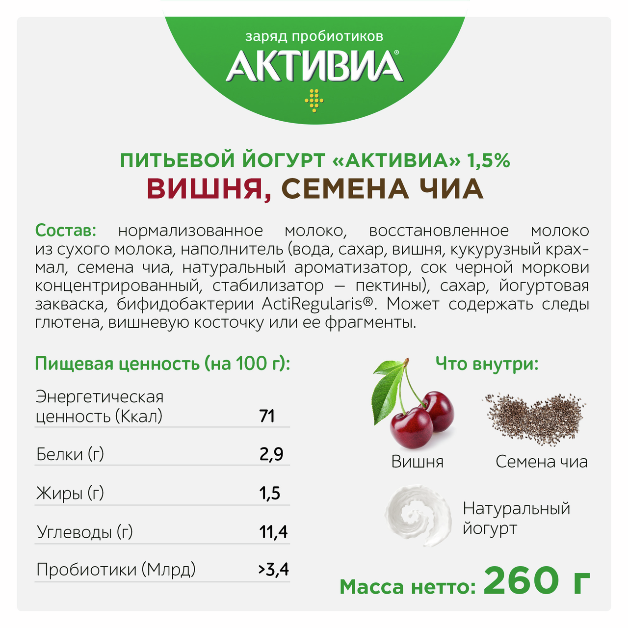 Йогурт Активиа питьевой вишня-семена чиа 1.5%, 260г