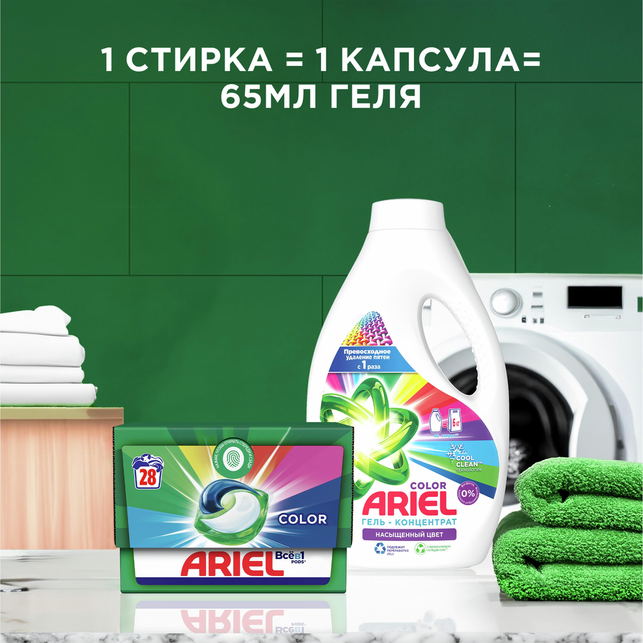 Жидкий Гель-концентрат Ariel Color для цветного белья - превосходно и бережно отстирывает загрязнения на одежде и белье, сохраняя их яркость и цвет. В отличие от обычного порошка, Ariel-гель сразу попадает в барабан стиральной машины, и быстро растворяется в воде. Он эффективен на коротких циклах стирки и беспощадно удаляет пятна и грязь, вызывающие неприятные запахи, придавая одежде сияющую чистоту и приятный аромат свежести. Если у вас чувствительная кожа, рекомендуем обратить внимание на гипоаллергенную коллекцию Ariel для чувствительной кожи. Преимущества: - Превосходное удаление пятен с первой стирки даже при температуре 30C; - Не оставляет следов на одежде; - Сохраняет яркость цветных вещей на более длительный срок; - Помогает справиться с застарелыми пятнами; - Не дает грязи и пятнам въедаться в структуру волокон. При наличии трудновыводимых пятен обработайте их сначала гелем для стирки Ariel, а затем загрузите одежду в стиральную машину. Для наилучших результатов добавьте мерный колпачок с гелем для стирки в барабан стиральной машины. Для дополнительной мягкости и свежести белья используйте кондиционер Lenor: он защищает одежду от появления катышков, потери формы и пот��ри цвета. Теперь ваши любимые вещи прослужат вам дольше.
