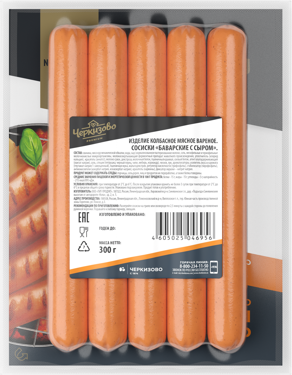 Сосиски Черкизово Баварские с сыром вареные, 300г