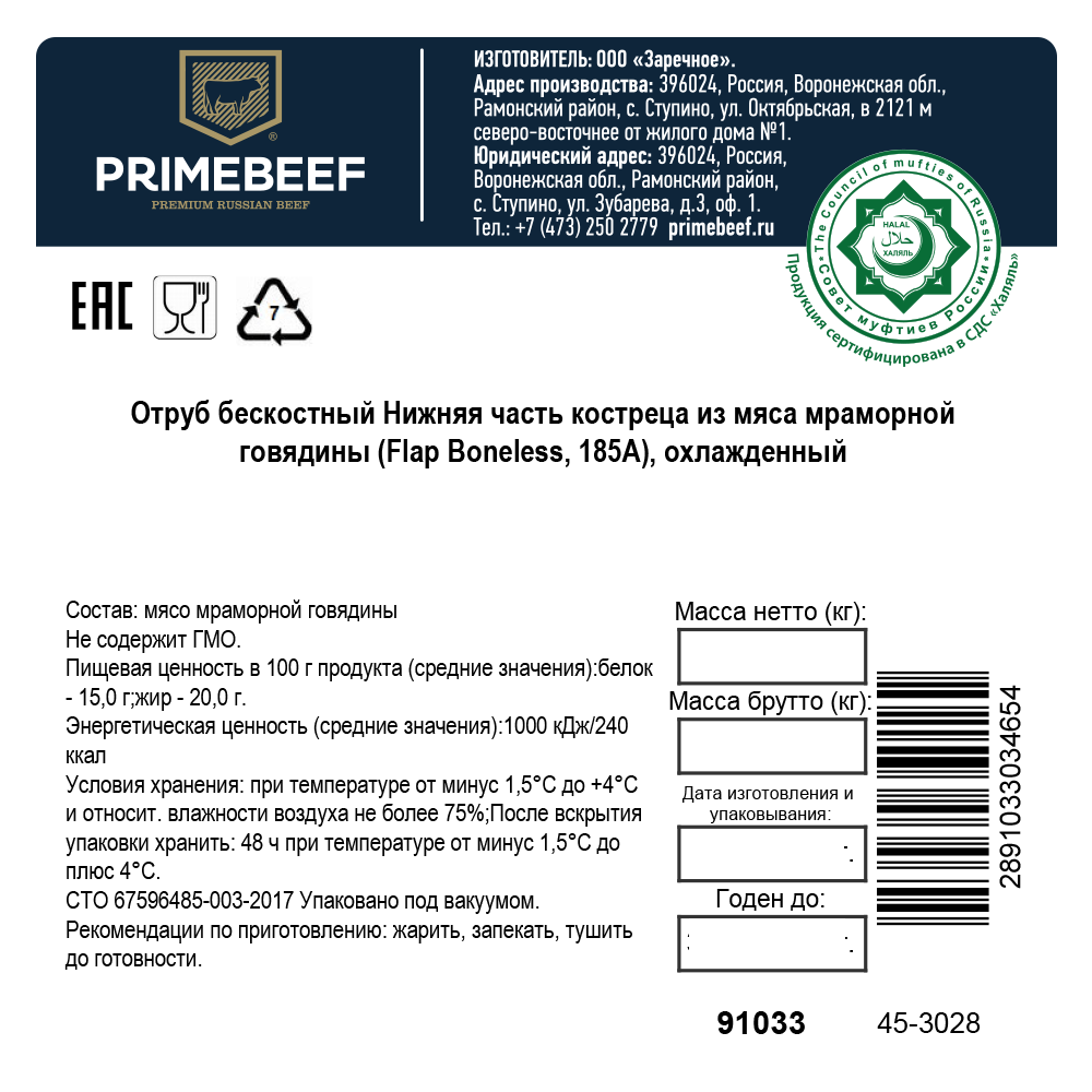 Кострец Primebeef Халяль нижняя часть охлажденный, ~3кг