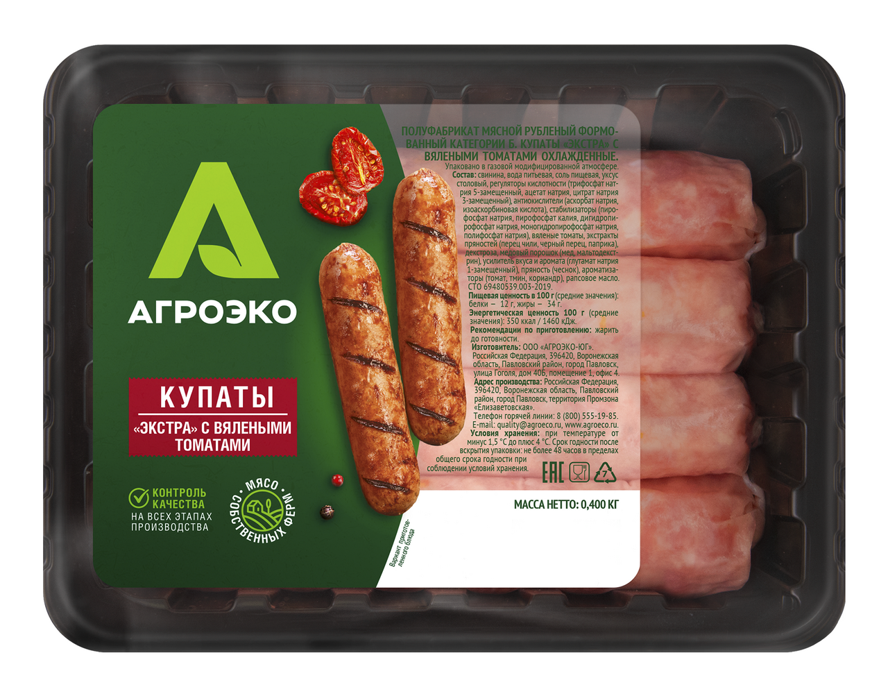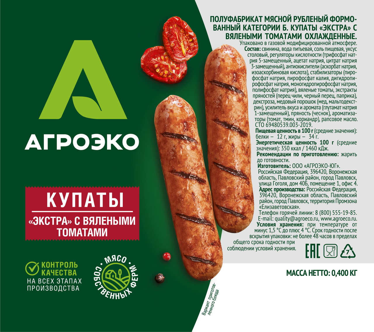 Купаты АгроЭко Экстра с вялеными томатами охлажденные, 400г