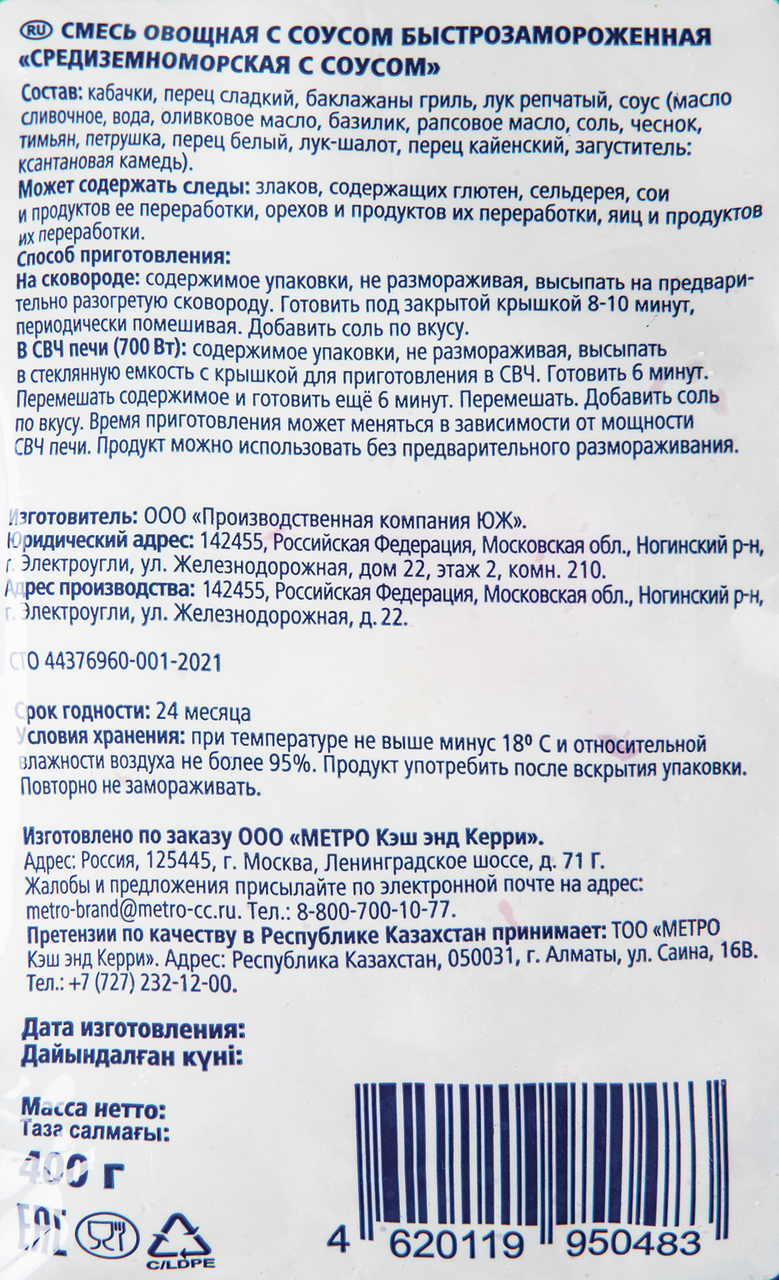 Произведенная под брендом METRO Chef овощная смесь Средиземноморская оптимально подходит для самостоятельного блюда, а также сочетается с морепродуктами и рыбой. В ее составе отборные спелые цуккини, обжаренные баклажаны, репчатый лук и сладкий перец, которые дополняются соусом троодос, насыщенным базиликом и тимьяном. Замороженная по особой технологии смесь позволит сэкономить время на приготовлении ужина. Достаточно обжарить ее на сковороде несколько минут, постоянно помешивая.