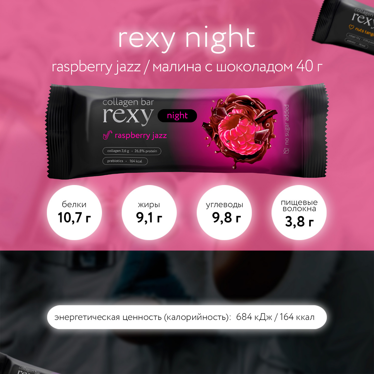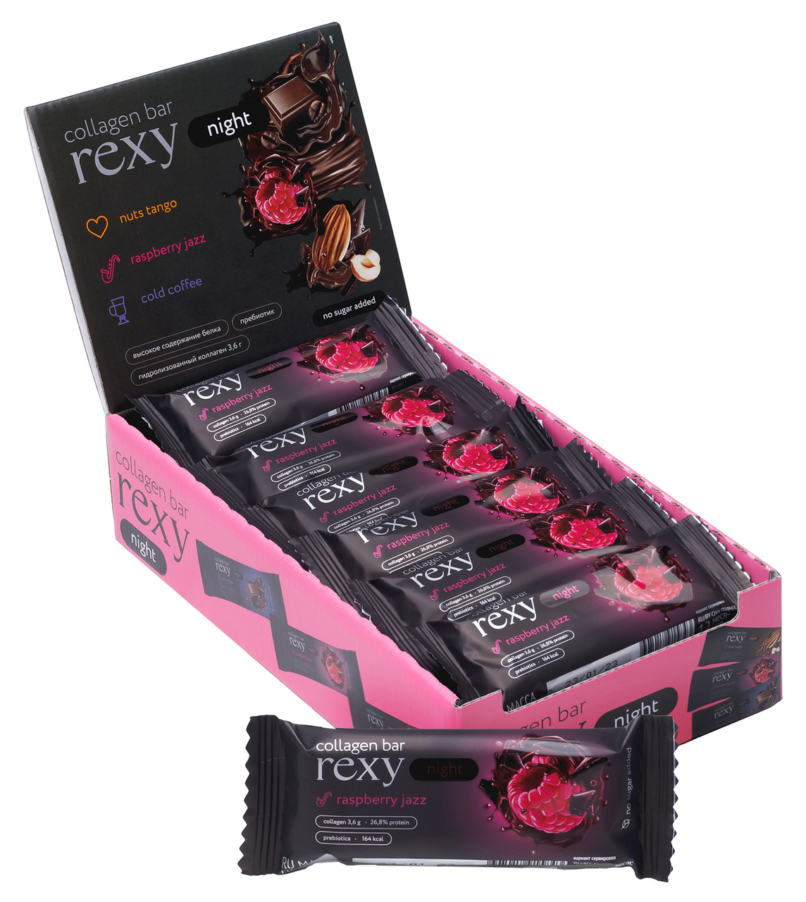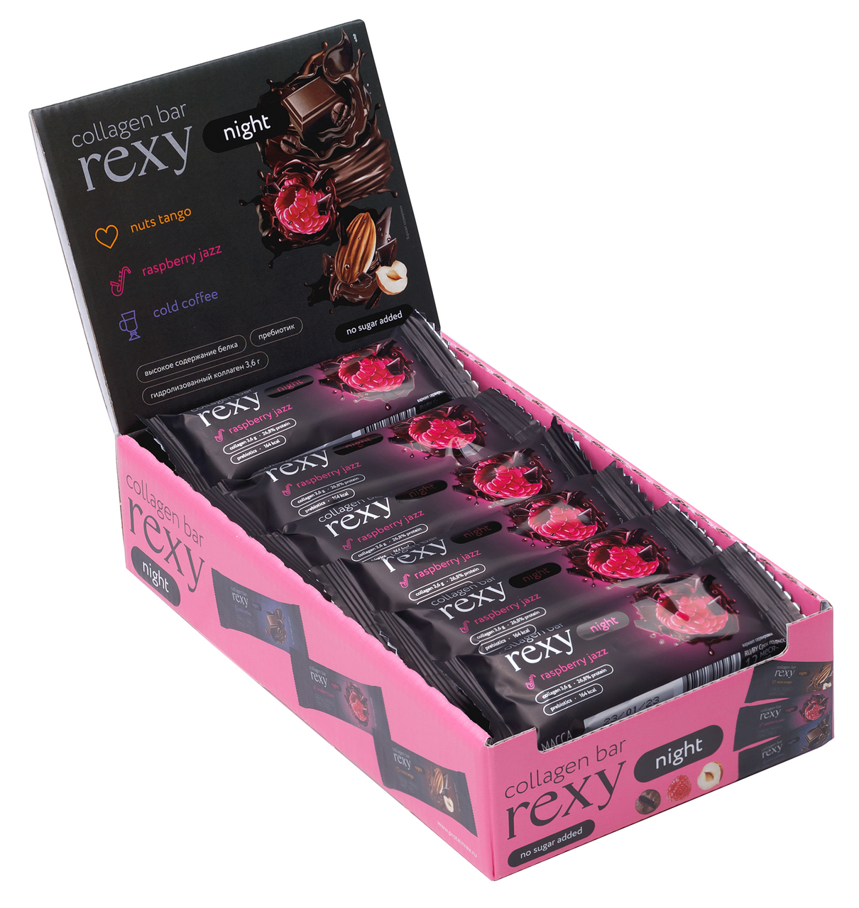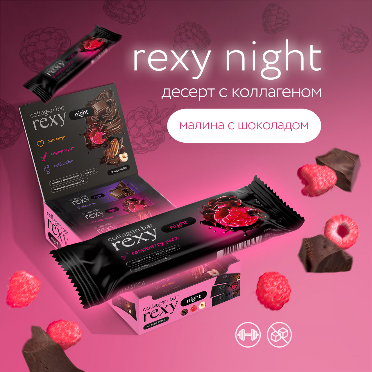 Батончик протеиновый Rexy Protein Night малиновый, 40г х 18 шт