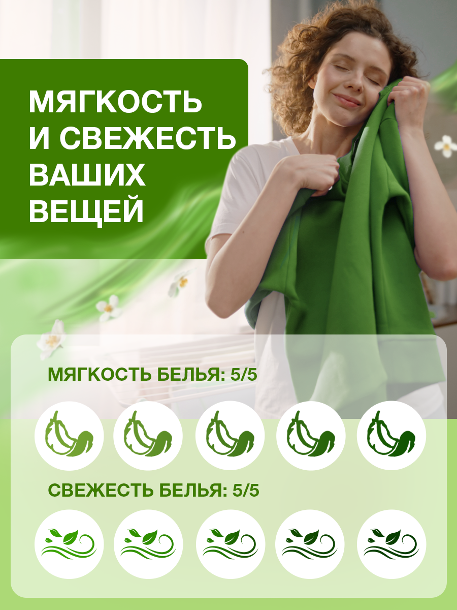Порадуйте себя и своих близких невероятной мягкостью вещей и продолжительным свежим ароматом с кондиционером Вернель Свежесть Зеленого Сада с нотками юдзу, жасмина, эвкалипта и сандала. Для заботы о самых любимых. А для эффективного удаления пятен используйте кондиционеры для белья Вернель вместе со средствами для стирки от бренда Персил.