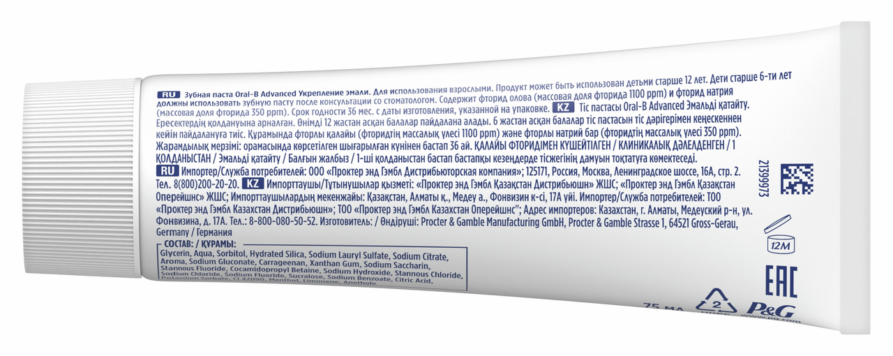Зубная паста Oral-B Advanced укрепление эмали, 75мл