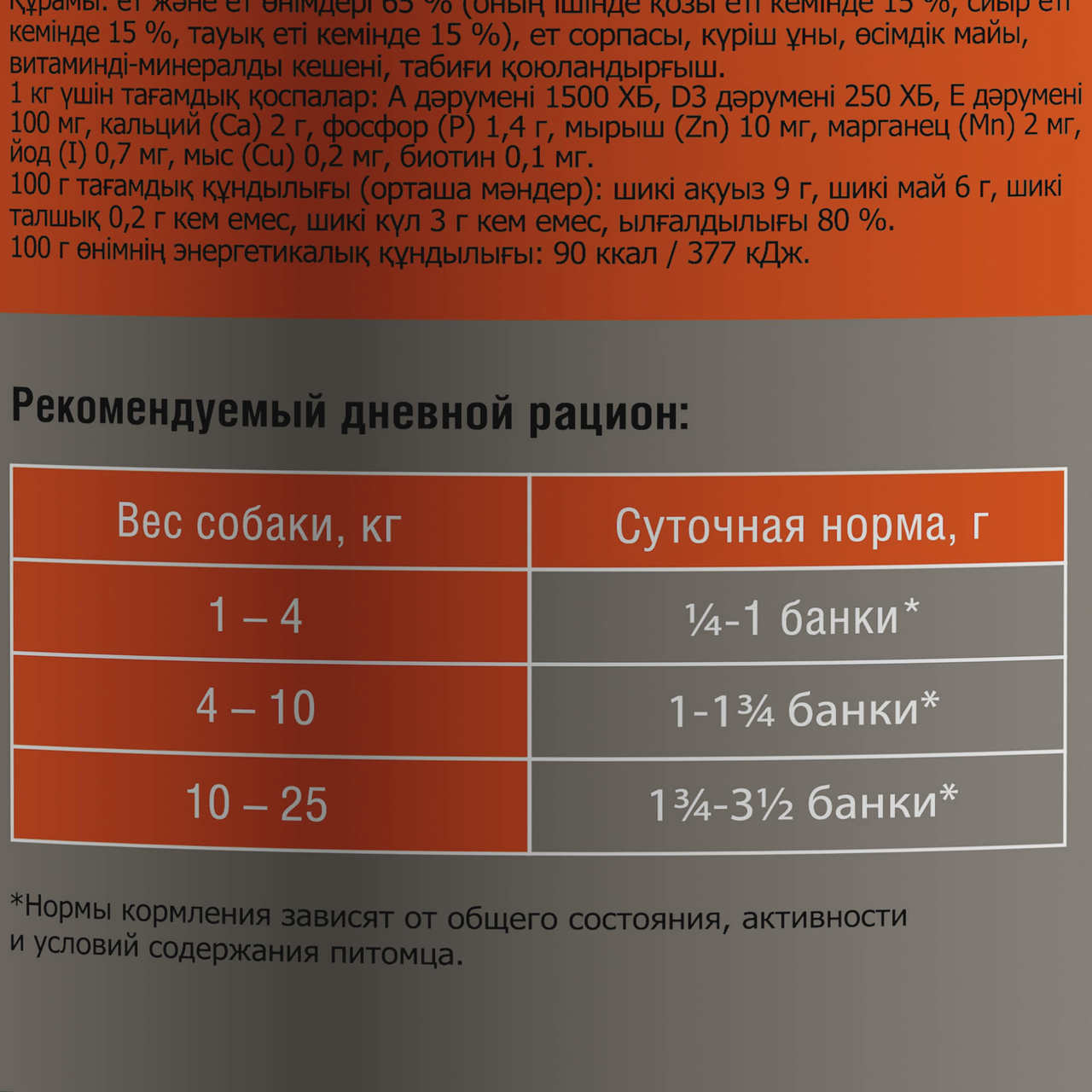 Мясо и мясные субпродукты 65 % (в том числе ягнёнок не менее 15 %, говядина не менее 15 %, курица не менее 15 %), мясной бульон, рисовая мука, растительное масло, витаминно-минеральный комплекс, натуральный загуститель.
