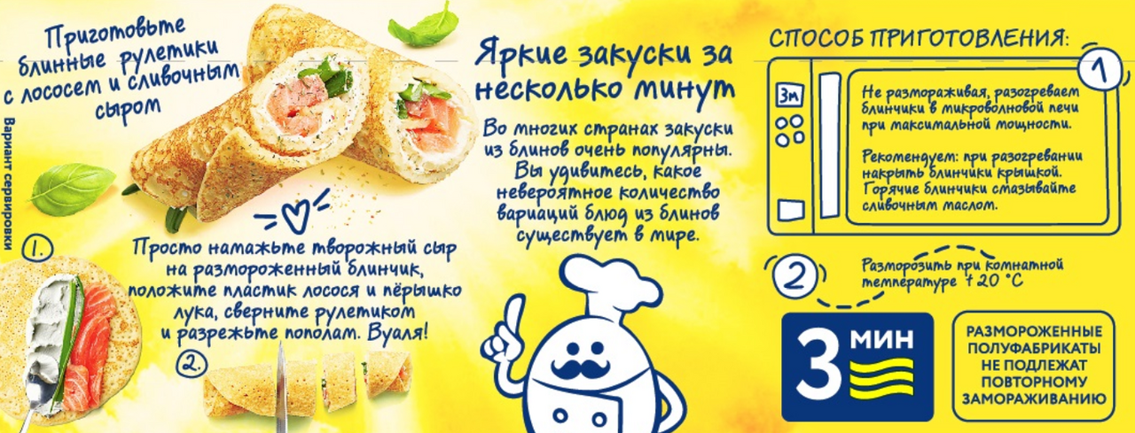 Созданы по традиционному рецепту. Блюдо из тонкого нежного теста составит удачное сочетание со сметаной, джемом, вареньем, сгущенным молоком и другими топпингами.