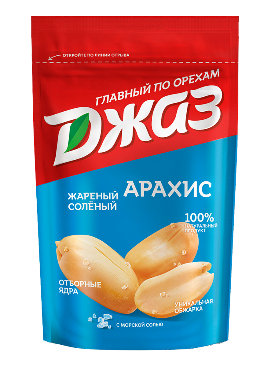 Арахис Джаз - это уникальный продукт на российском рынке. Цельный бразильский арахис сорта Раннер обжаривается с добавлением растительного масла и посыпается морской солью. Уникальная технология обжарки и первоклассное сырье гарантируют неповторимый вкус и сохранение всех полезных веществ