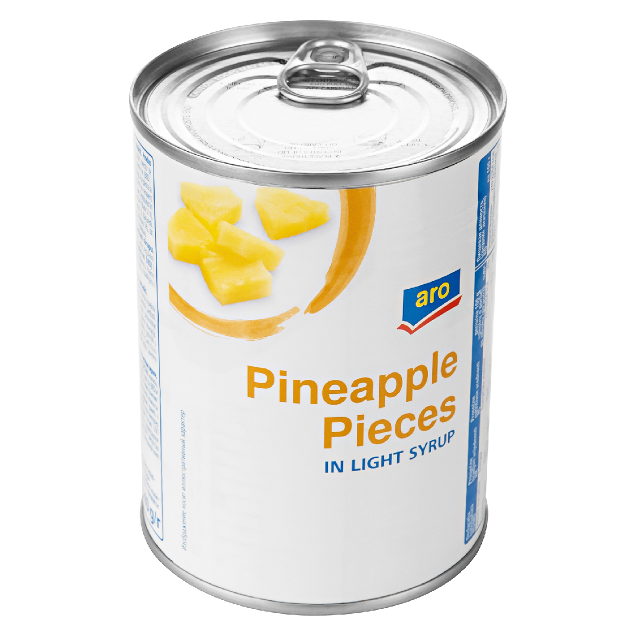aro Ананасы кусочки в легком сиропе 560г представляет собой натуральный продукт, который производится из свежих фруктов и концентрированного сахарного сиропа. Он отличается мягкостью, сочностью, ярко-выраженным вкусом с легкой кислинкой и приятным ароматом. Лакомство можно употреблять в натуральном виде или добавлять в разные блюда – салаты, холодные и горячие закуски. Консервированные ананасы могут выступать в качестве украшения к тортам, пирожным и другим кондитерским и хлебобулочным изделиям. Удобная форма нарезки экономит время и делает любое блюдо не только вкусным, но и аппетитным.