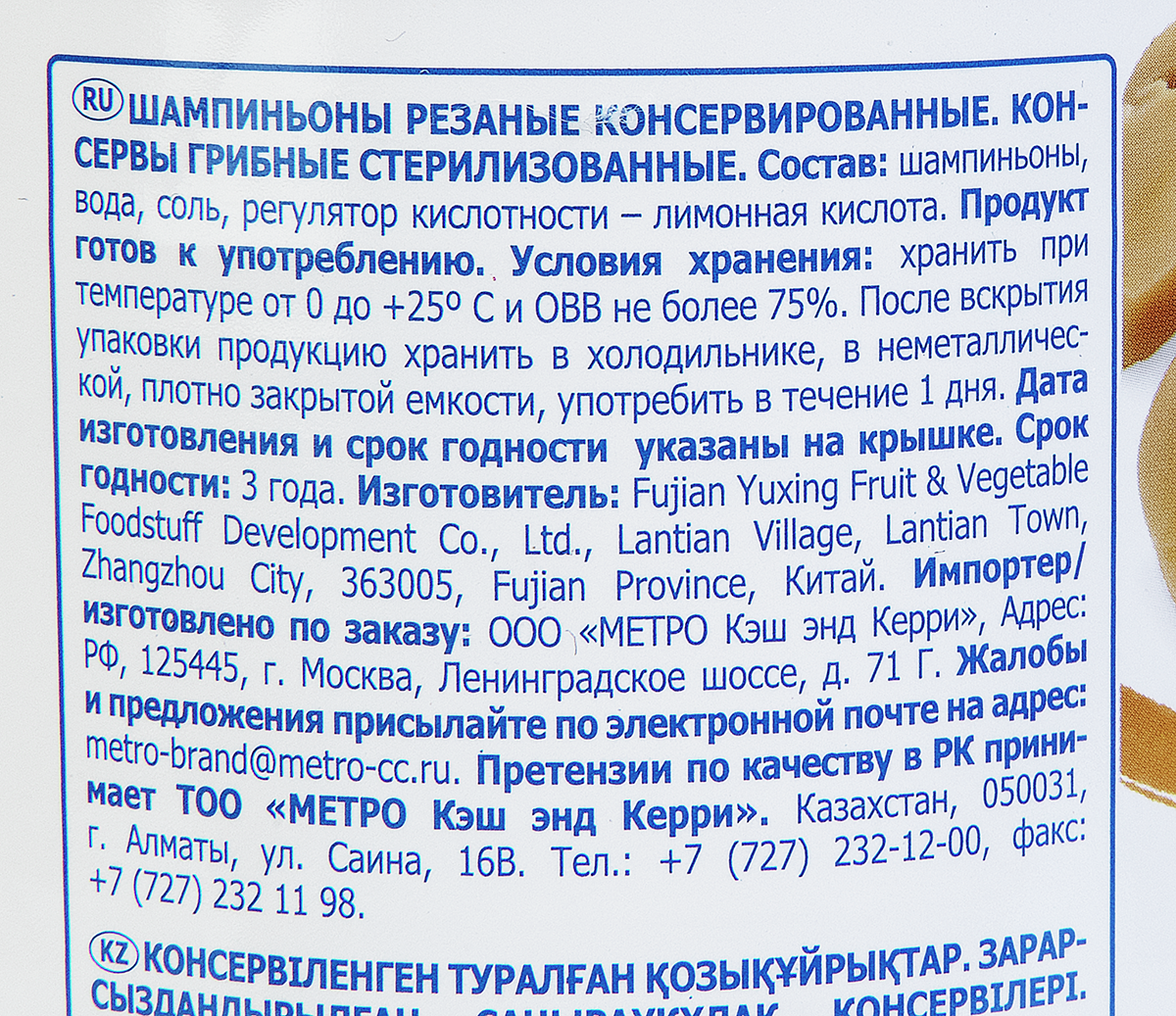 Шампиньоны, вода, соль, регулятор кислотности (лимонная кислота).