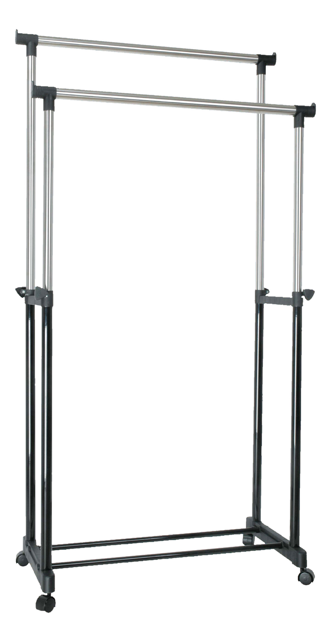 Вешалка напольная Tarrington House с двумя планками выполнена из нержавеющей стали и износоустойчивого пластика. Модель отличается практичностью и вместительностью, ведь состоит из двух планок для аккуратного развешивания белья. Она подойдет как для взрослой, так и детской одежды. Продуманная конструкция не занимает много места в помещении, становится хорошей альтернативой громоздким шкафам. Она быстро собирается и демонтируется, устанавливается в любом удобном месте благодаря своей мобильности, четырем вращающимся колесикам. В модели регулируется высота от 94 до 165 см.