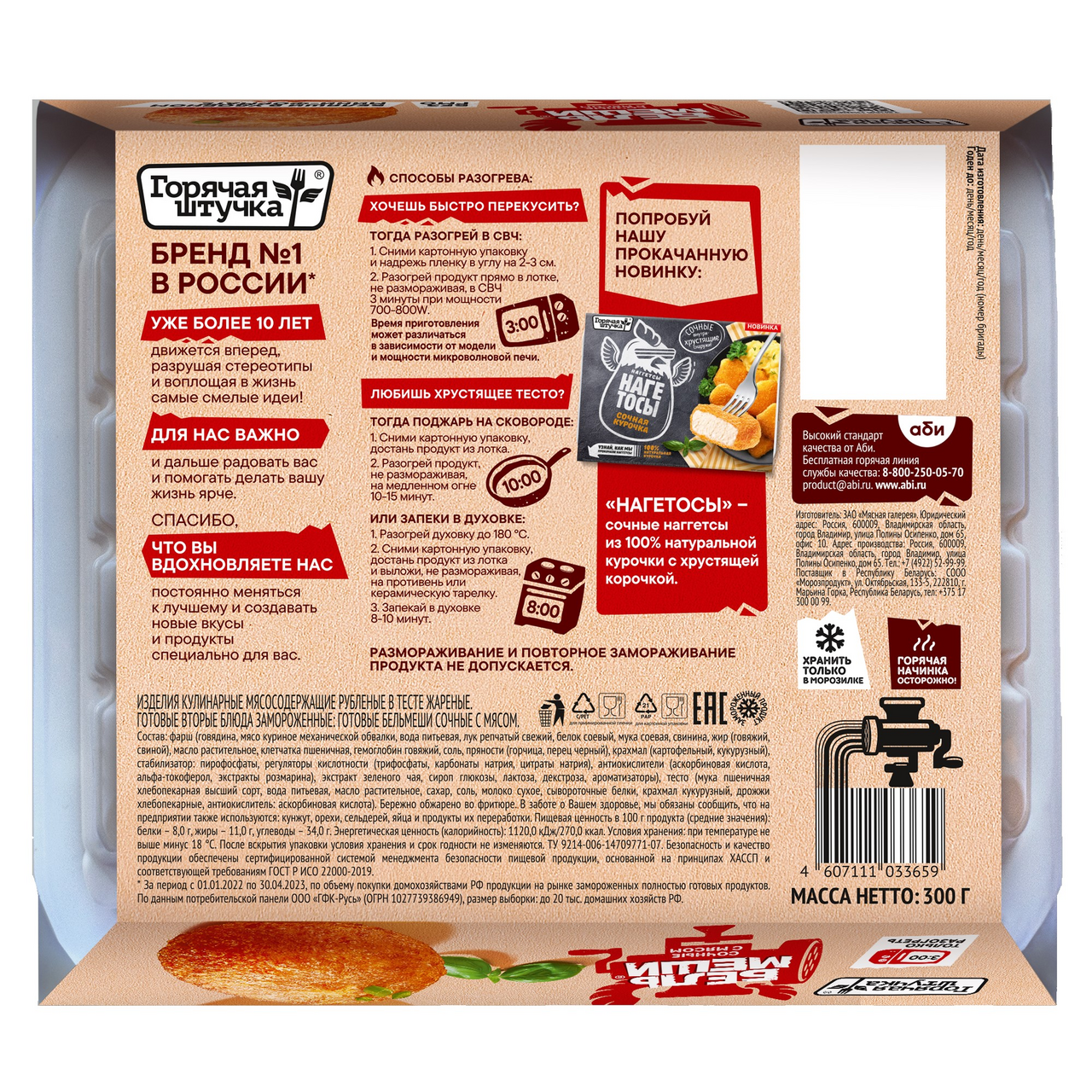 Фарш (говядина, мясо куриное механической обвалки, вода питьевая, лук репчатый свежий, белок соевый, мука соевая, свинина, жир (говяжий, свиной), масло растительное, клетчатка пшеничная, гемоглобин говяжий, соль, пряности (горчица, перец черный), крахмал (картофельный, кукурузный), стабилизатор: пирофосфаты, регуляторы кислотности (трифосфаты, карбонаты натрия, цитраты натрия), антиокислители (аскорбиновая кислота, альфа-токоферол, экстракты розмарина), экстракт зеленого чая, сироп глюкозы, лактоза, декстроза, ароматизаторы), тесто (мука пшеничная хлебопекарная высший сорт, вода питьевая, масло растительное, сахар, соль, молоко сухое, сывороточные белки, крахмал кукурузный, дрожжи хлебопекарные, антиокислитель: аскорбиновая кислота). Бережно обжарено во фритюре. В заботе о Вашем здоровье, мы обязаны сообщить, что на предприятии также используются: кунжут, орехи, сельдерей, яйца и продукты их переработки.