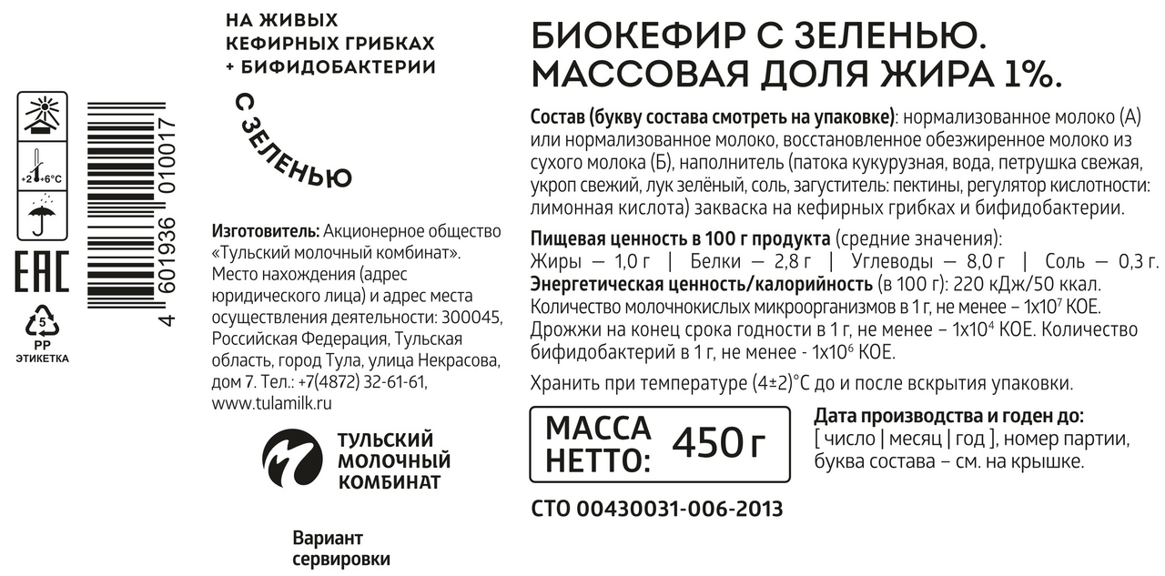 Биокефир Бежин луг с зеленью 1%, 450г