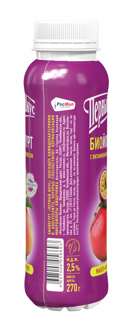 Биойогурт питьевой Первый вкус манго-маракуйя 2.5%, 270г