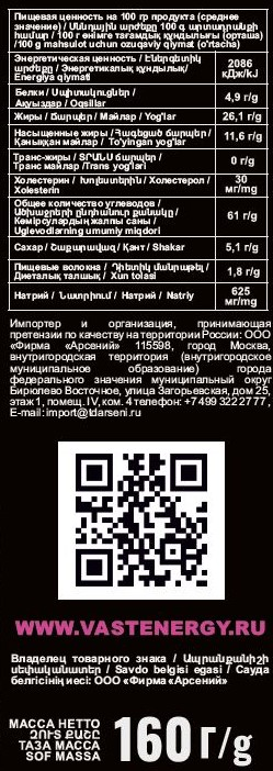 • Энергетическая ценность, ккал/100 г 498