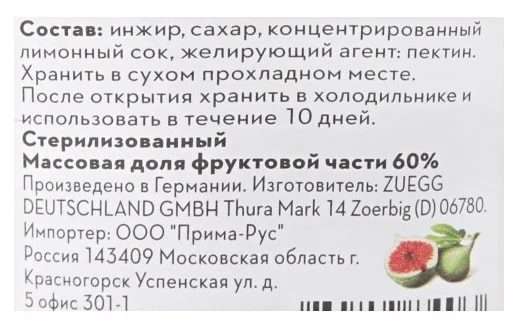 Инжир, сахар, концентрированный лимонный сок, желирующий агент: пектин.
