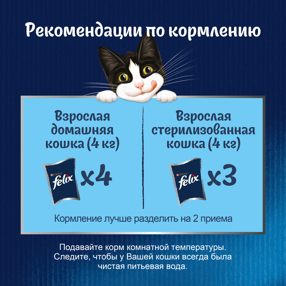 Консервированный полнорационный корм для взрослых кошек, с говядиной в желе с томатами.Корм Felix "Sensations" - это нежные кусочки с мясом, покрытые сочным желе из томатов. Эти ароматные желе делают корм особенно аппетитным и привлекательным для вашего питомца. Корм содержит Омега-6 жирные кислоты, а также правильное сочетание белка и витаминов для полного удовлетворения ежедневных потребностей кошки.