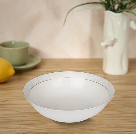 Салатник Fioretta Elegance, 23 см выполнен из качественного прочного материала. Благодаря оригинальному принту он станет необычным украшением повседневного и праздничного стола. Изделие отличается особой звонкостью и прозрачностью, что делает его узнаваемым среди остальных. Салатник будет органично смотреться в ансамбле с другими предметами сервировки из этой же коллекции. Мыть изделие допустимо в посудомоечной машине, но, чтобы оно как можно дольше сохранило свой презентабельный вид, рекомендуется использовать ручное очищение. После – тщательно высушить посуду мягкой салфеткой или бумажным полотенцем. От использования емкости в СВЧ-печи также лучше воздержаться.