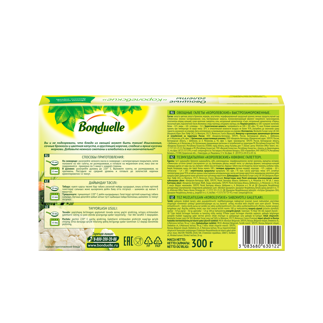 Овощные галеты Бондюэль Королевские быстрозамороженные, 300г