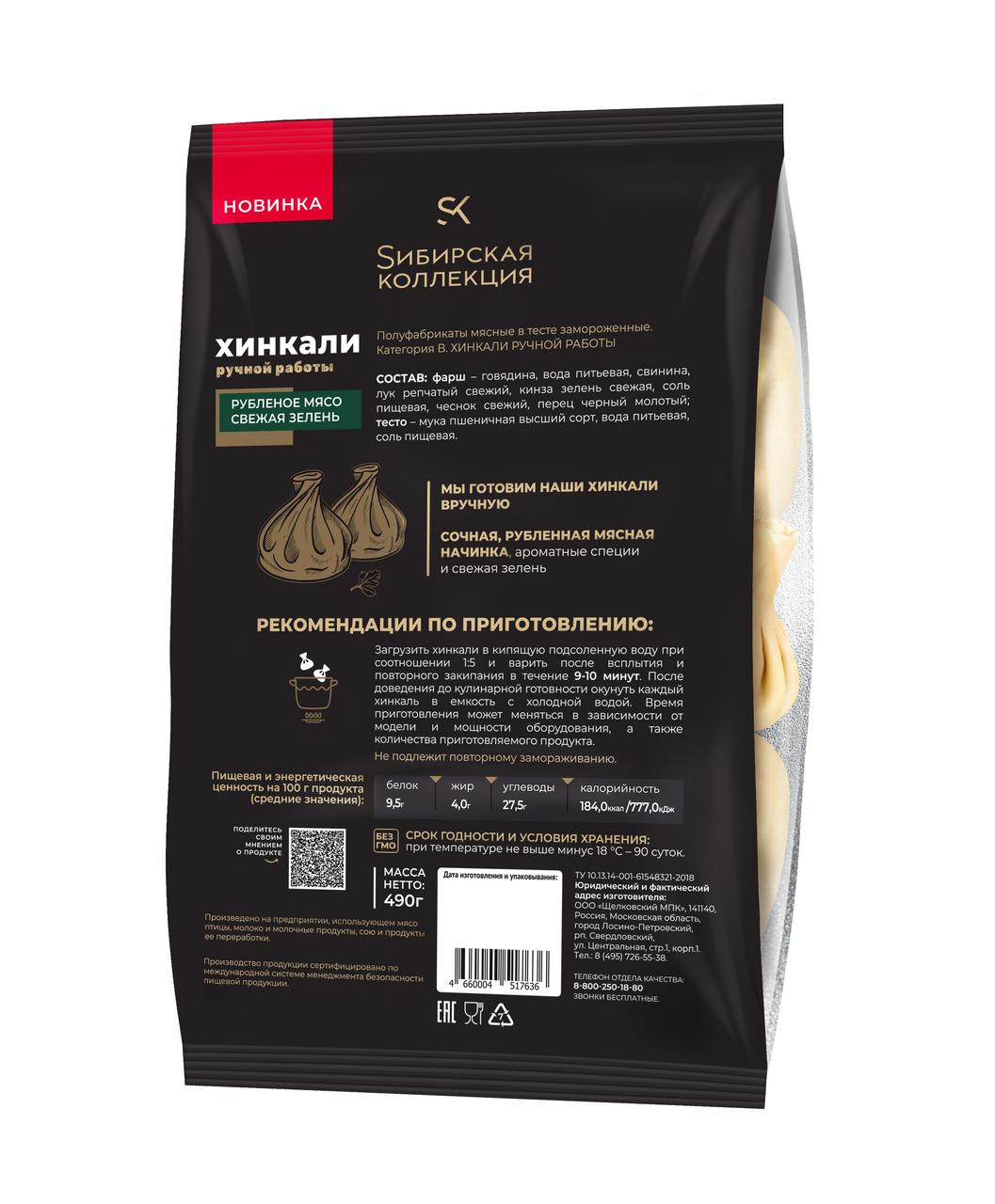 Хинкали Сибирская коллекция ручная коллекция с мясом и зеленью замороженные, 490г