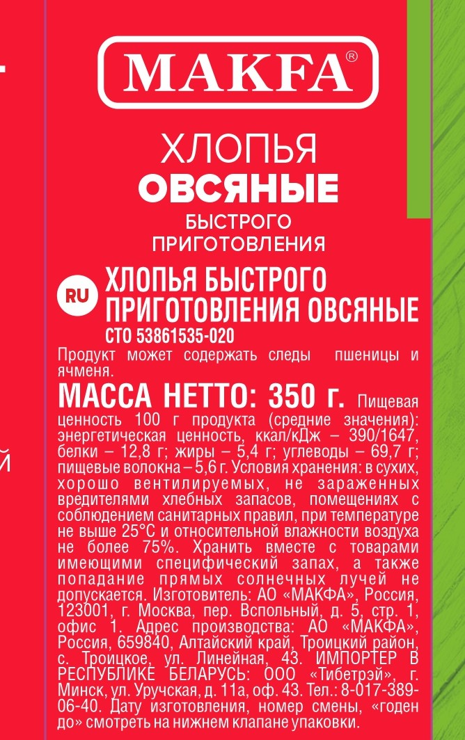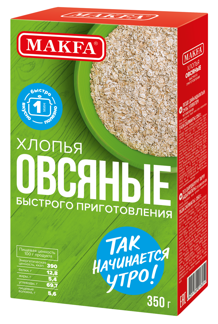Хлопья овсяные Makfa быстрого приготовления, 350г