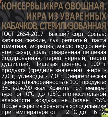 Нежная консистенция, приятный вкус являются традиционными составляющими нашей кабачковой икры. Гармоничный натуральный запах, в котором все ингредиенты выступают единым аккордом - мягкий аромат кабачков подчеркнут томатной кислинкой и уравновешен сладостью моркови и тонами лука.
