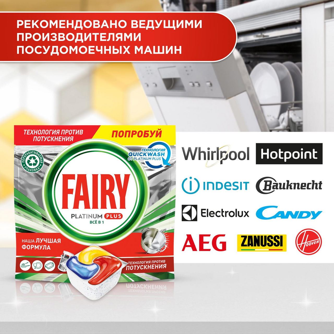 Новый подход к повседневным бытовым задачам — капсулы для посудомоечной машины Fairy All in 1 Лимон, 50шт. Эти таблетки, созданные специально для автоматического мытья посуды, справляются даже со сложными загрязнениями. Вас порадует двойной эффект от применения средства — удаление стойких загрязнений и устранение налета на посуде. Капсулы Platinum Plus All in 1 не содержат фосфатов, что благоприятно воздействует на механизм посудомоечных машин. А входящие в состав соль, ополаскиватель и очиститель обеспечивают защиту стеклянной посуды и столового серебра. Все, что нужно для мытья посуды и ухода за посудомоечной машиной, в 1 капсуле. Особенности использования капсул: - Идеальная чистота. Многокамерные таблетки удаляют даже въевшиеся остатки пищи, пригоревший жир. - Быстро растворяются. Подходят для использования на коротких циклах мойки. - Защита от потускнения. Формула с технологией против потускнения посуды. - Сохранность посудомойки. Специальная формула предотвращает накопление жира на фильтре, системе спуска и разбрызгивателе посудомоечной машины. Ведущие производители посудомоечных машин рекомендуют использовать капсулы Фейри. В упаковке 50 капсул, рассчитанных на соответствующее количество циклов мытья посуды.