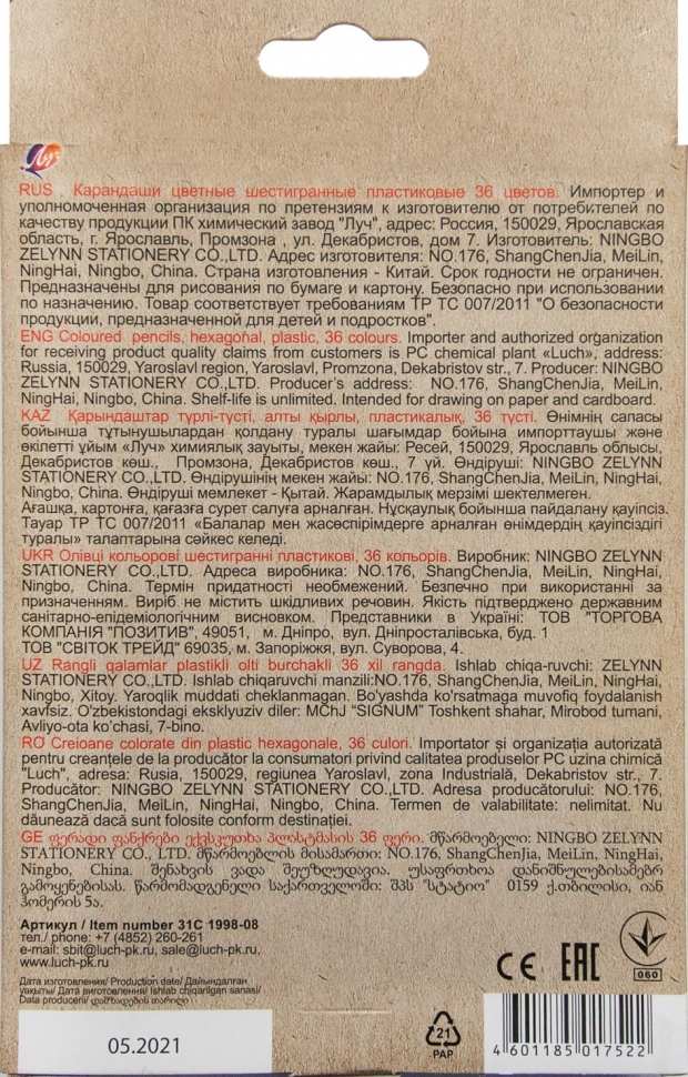 Карандаши Zoo 36 цветов Луч, 6г цветные, заточенные, для рисования на бумаге, ударопрочные и легко затачиваются, не оставляя заусенцев. Форма карандаша шестигранная, она делает карандаш устойчивым на поверхности, снижает усталость и придает дополнительный комфорт.