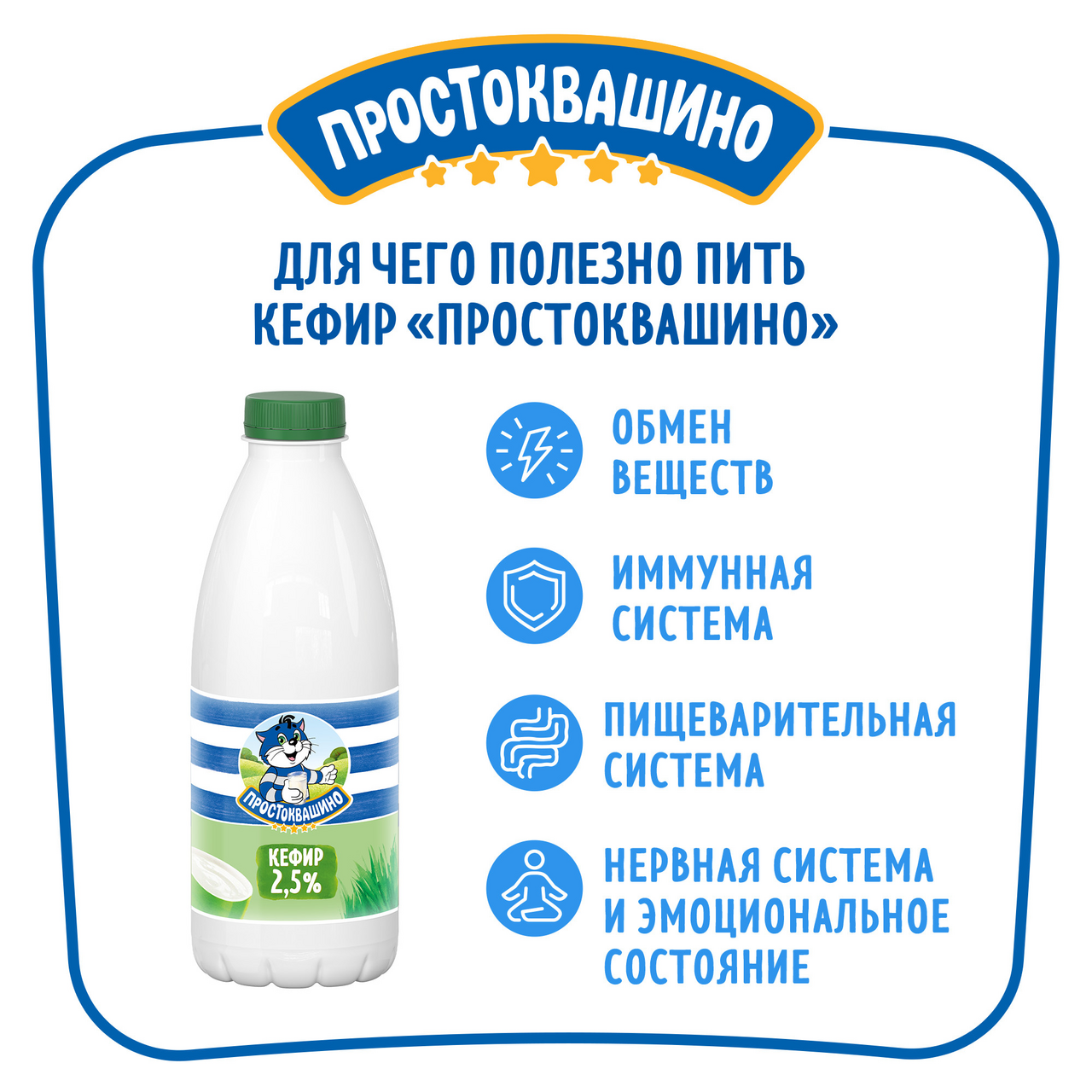 Кефир Простоквашино, 2,5% 930 г производится из продуктов высокого качества. При изготовлении для закваски добавляется полезный пробиотик, стабилизирующий работу желудочно-кишечного тракта, укрепляющий иммунитет. При регулярном употреблении снижается риск развития кариеса, артрита, укрепляются костные и мышечные ткани. Кефир помогает ускорить процесс восстановления после изнурительных физических упражнений, зарядиться энергией и ощутить насыщение, без дальнейшей тяжести в желудке. Напиток выделяется приятным обволакивающим вкусом, в котором присутствуют сливочные нюансы, дополненные, характерной кефиру, кислинкой. Напиток можно употреблять в чистом виде, а также готовить на его основе различные десерты: оладьи, блины, выпечку. В кефир можно добавить отруби, овсяные хлопья или гранолу, после чего напиток становится питательным полезным перекусом или легким ужином. Полезен и взрослым, и детям.