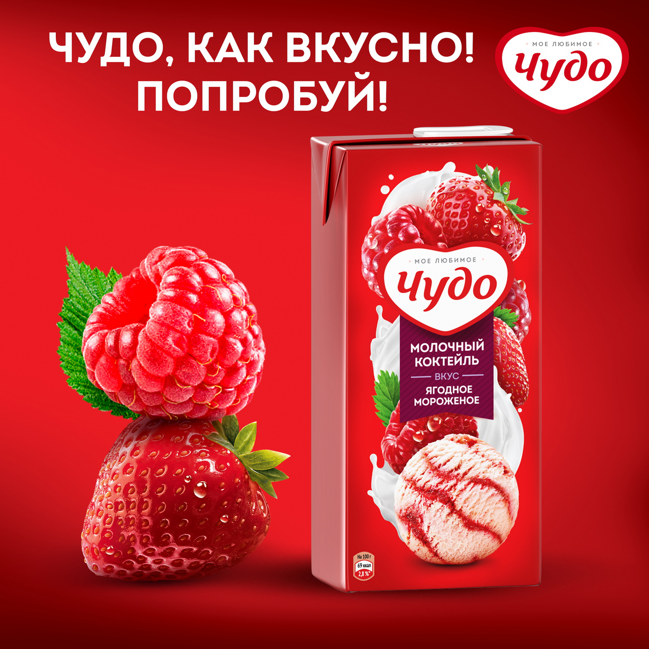 Коктейль молочный Чудо ягодное мороженое 2%, 960г