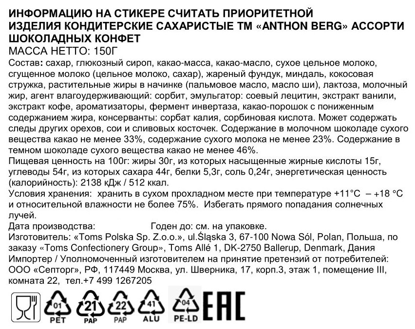 Конфеты Anthon Berg Selected Favorites шоколадные ассорти, 150г