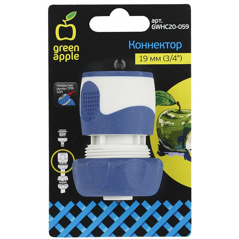 Коннектор Green Apple для шланга, 19 мм — незаменимая вещь на приусадебном участке и в теплицах. Везде, где установлены системы полива, такое изделие будет полезно. Его можно приобрести для личного пользования и для профессиональной деятельности. Коннектор представляет собой деталь, которая позволяет соединить между собой два шланга. На него можно закрепить разбрызгиватель или пистолет-распределитель. Монтаж систем полива можно производить непосредственно во время использования шлангов. Перекрывать подачу воды не потребуется: специальная опция Аквастоп автоматически прервет поток в процессе замены насадок. Это удобно, экономит время и позволяет быстро внести необходимые изменения в конструкцию системы полива. Изделие изготовлено из прочной ABS-пластмассы. Этот материал рассчитан на длительную эксплуатацию. Он не подвержен воздействию внешних факторов. Соблюдение правил использования и рекомендаций производителя обеспечит безупречную работу коннектора.