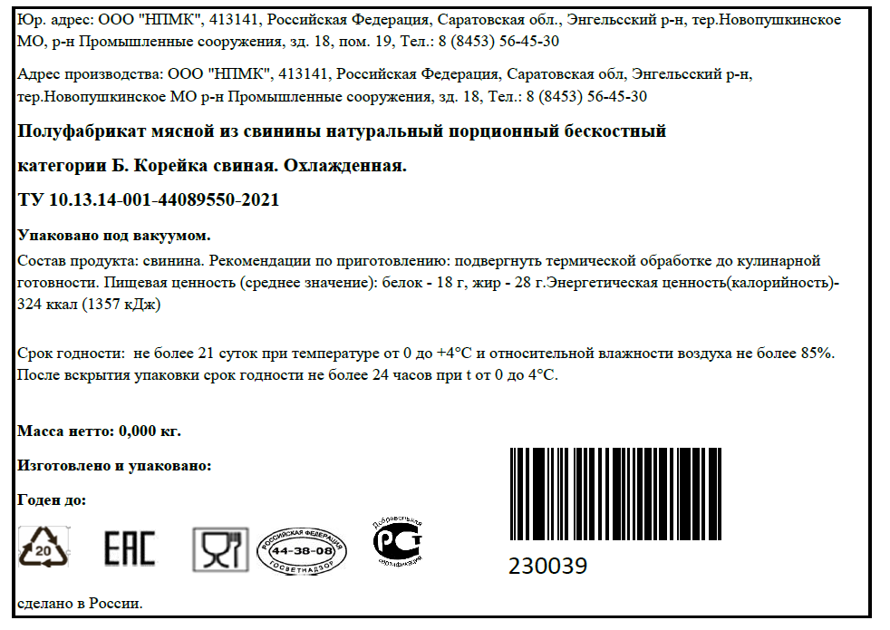 Корейка свиная Новопушкинский МК охлажденная, ~600г