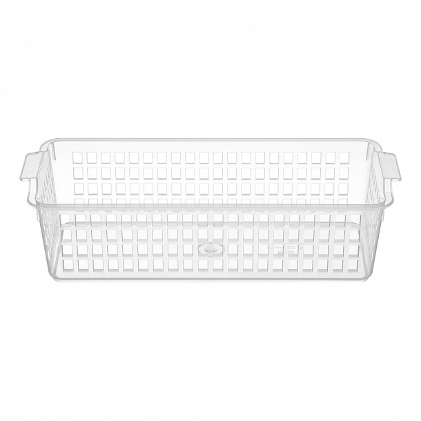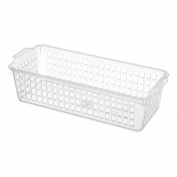 Корзинка универсальная Phibo 31,5 х 13 х 0,85 см подходит для организации хранения на кухне и в холодильнике. Сюда можно положить фрукты, овощи, йогурты, сыры и другие продукты. Высокие стенки корзинки позволят удобно хранить соусы в упаковке дой-пак. Изделие подходит для хранения специй и консервов на полках кухонных шкафов. Благодаря перфорации создается дополнительная вентиляция содержимого. Корзинки легко вкладываются друг в друга в пустом виде для экономии места на кухне. Благодаря боковым ручкам их удобно переносить или снимать с полки.