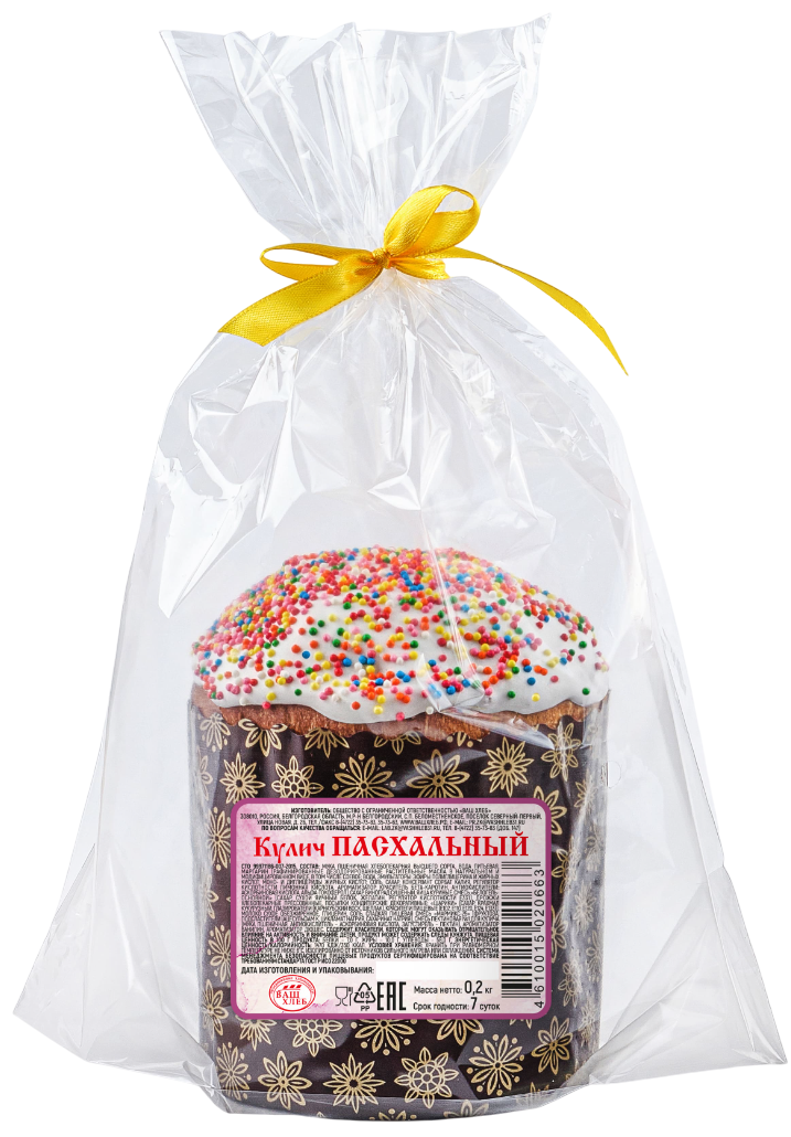 Кулич Ваш хлеб Пасхальный, 200г - вкусный и ароматный продукт, покрытый сладкой глазурью и дополненный разноцветным украшением.