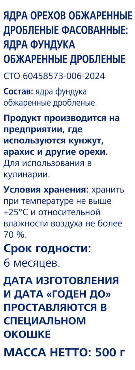 Ядра фундука обжаренные дробленые.