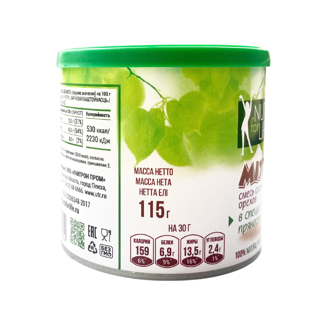 Микс ореховый Nuts for Life в специях и пряностях, 115г