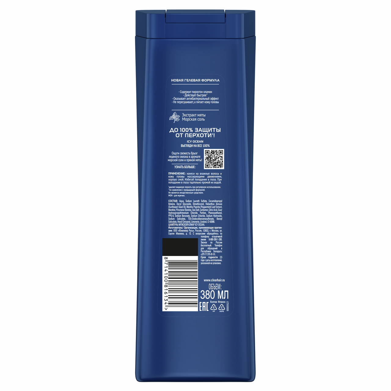 Шампунь Клиар Men Icy Ocean мужской, 380мл