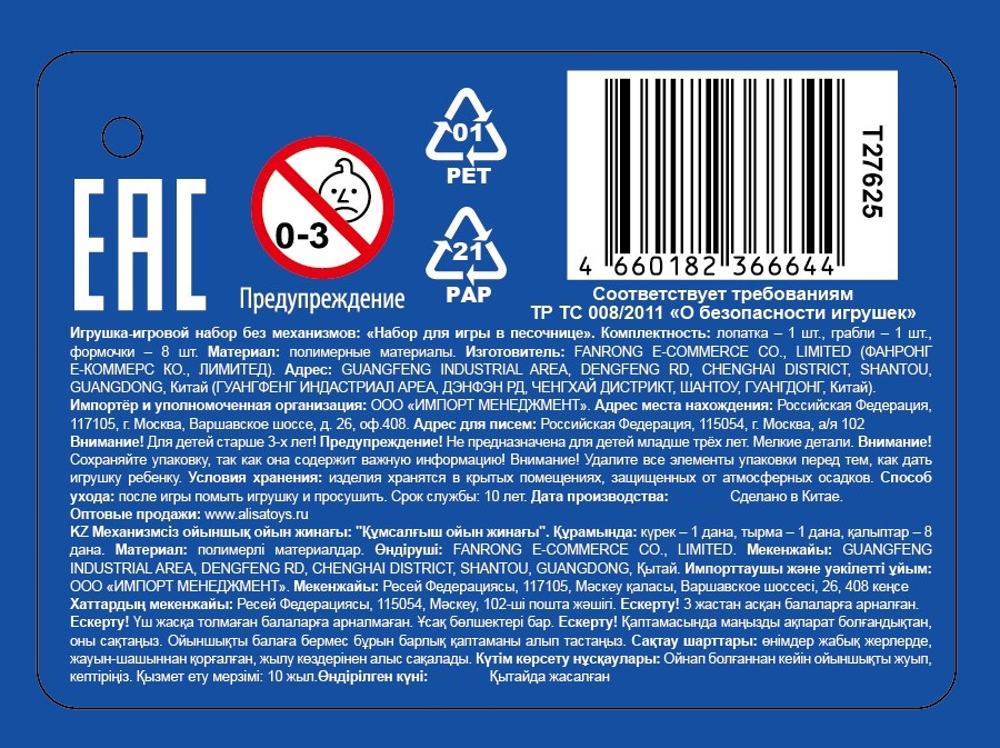 - Тип Набор для игры с песком